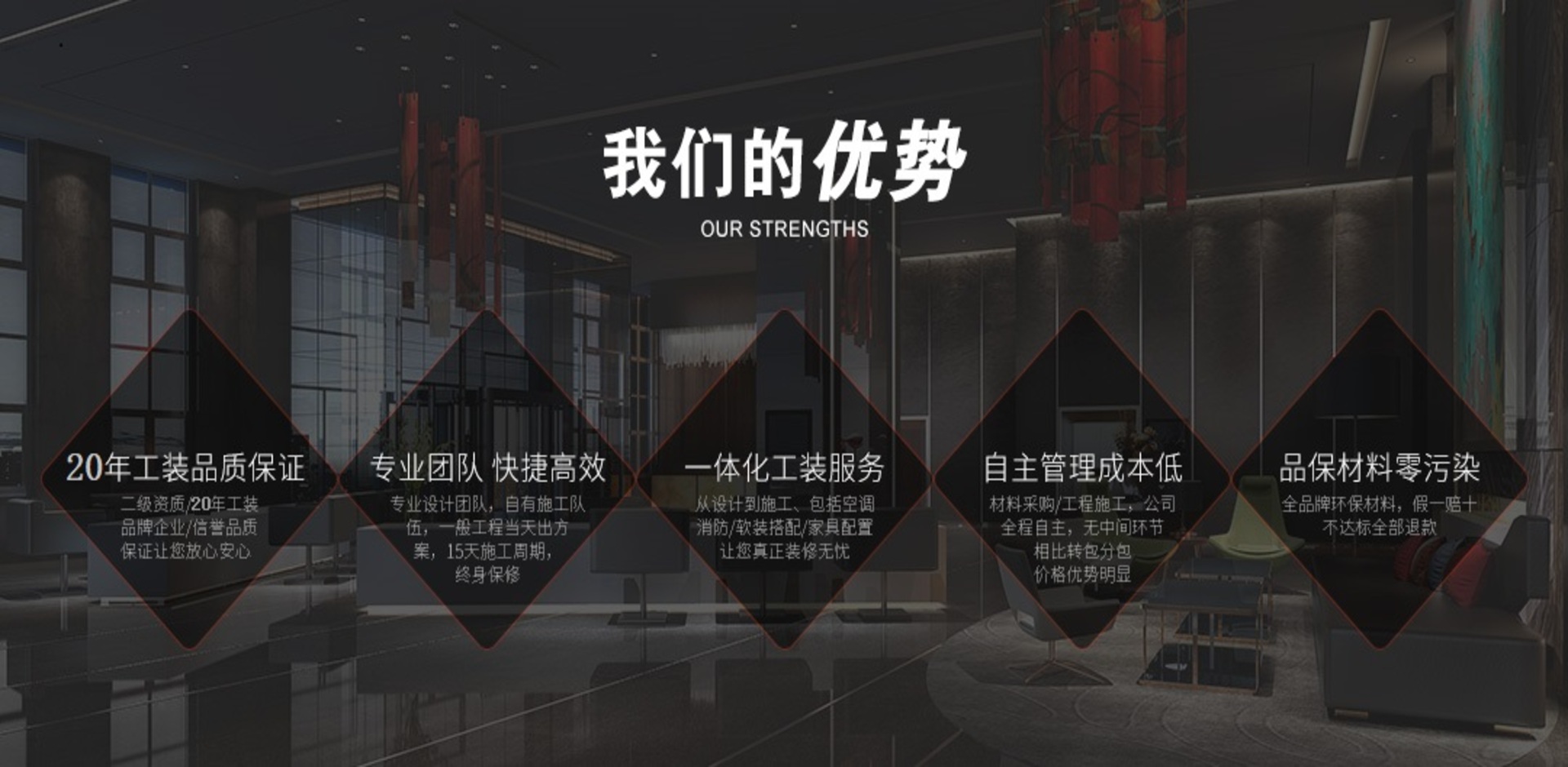 客戶稱心,我們安心”是我們公司的宗旨,也是公司全體員工的行為規(guī)范, 更是公司贏得客戶的鄭重承諾,“將心比心,誠(chéng)信誠(chéng)意”是公司與客戶溝通、 理解和信任的保證,尊重和維護(hù)客戶的利益是我們辦企業(yè)的標(biāo)準(zhǔn), 真心做到讓客戶省心、放心、稱心是我們公司的宗旨,“贏在品質(zhì)、立于誠(chéng)信”朗藝始終以高品質(zhì)工程質(zhì)量贏取客戶信任,以誠(chéng)實(shí)守信的做事風(fēng)格樹(shù)立公司品牌信譽(yù)與口碑。